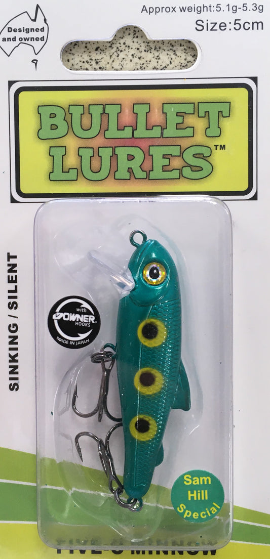 The Bullet Minnow was designed for one thing, to catch fish. Easily the Best and only Long Casting Hard body Lure In the world for its size as the name suggests .                                                                                                                                                              The Bullet Minnow love’s fast water and will swim without tumbling over and you will be surprised as you will hook up fish in this fast current. Unbelievable realistic fish looking colours just like a real minnow. Get one and try them out you will be amazed at the casting ability and the hook up rate leaving other lures brands behind .