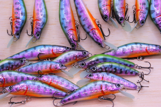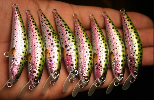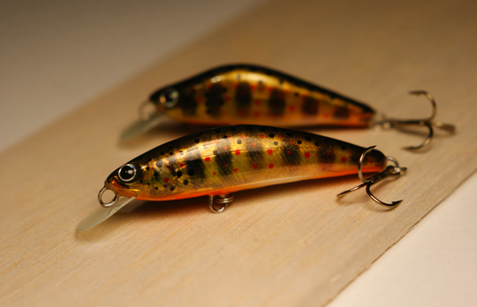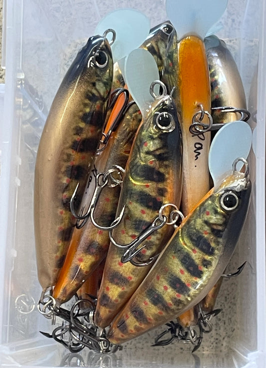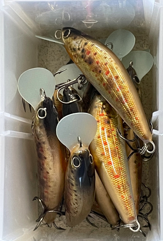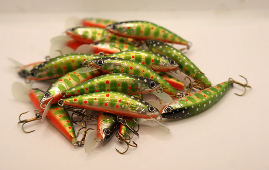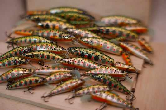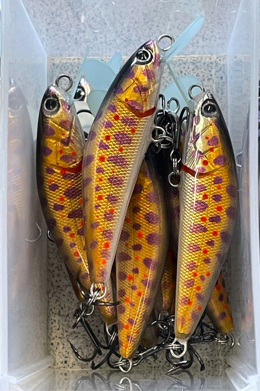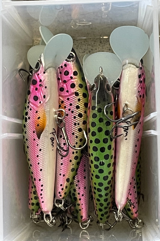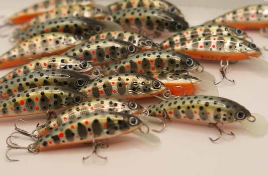 PAN Handmade trout lures are crafted from Balsa wood and feature a stainless steel trough wire. The lure body is hand foiled with scale details, head and gill shape plates are fitted to give that special flash and realism underwater.
