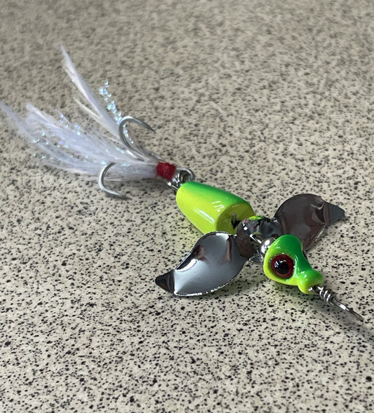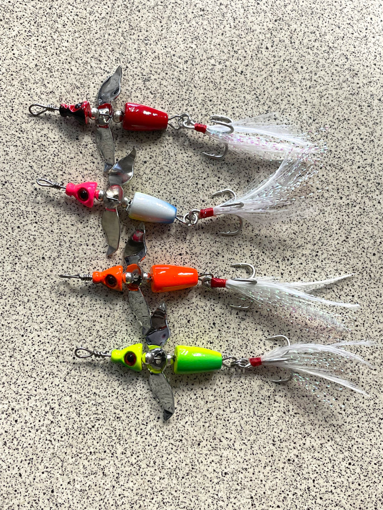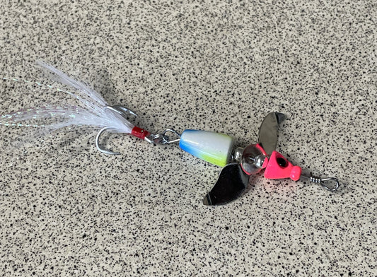 The Turbine features a mid body metal blade that spins as the lure is retrieved, its a different take on the in-line spinner style of lure and is very effective on a wide range of species including Trout, Perch, Bass, Bream and Flathead.