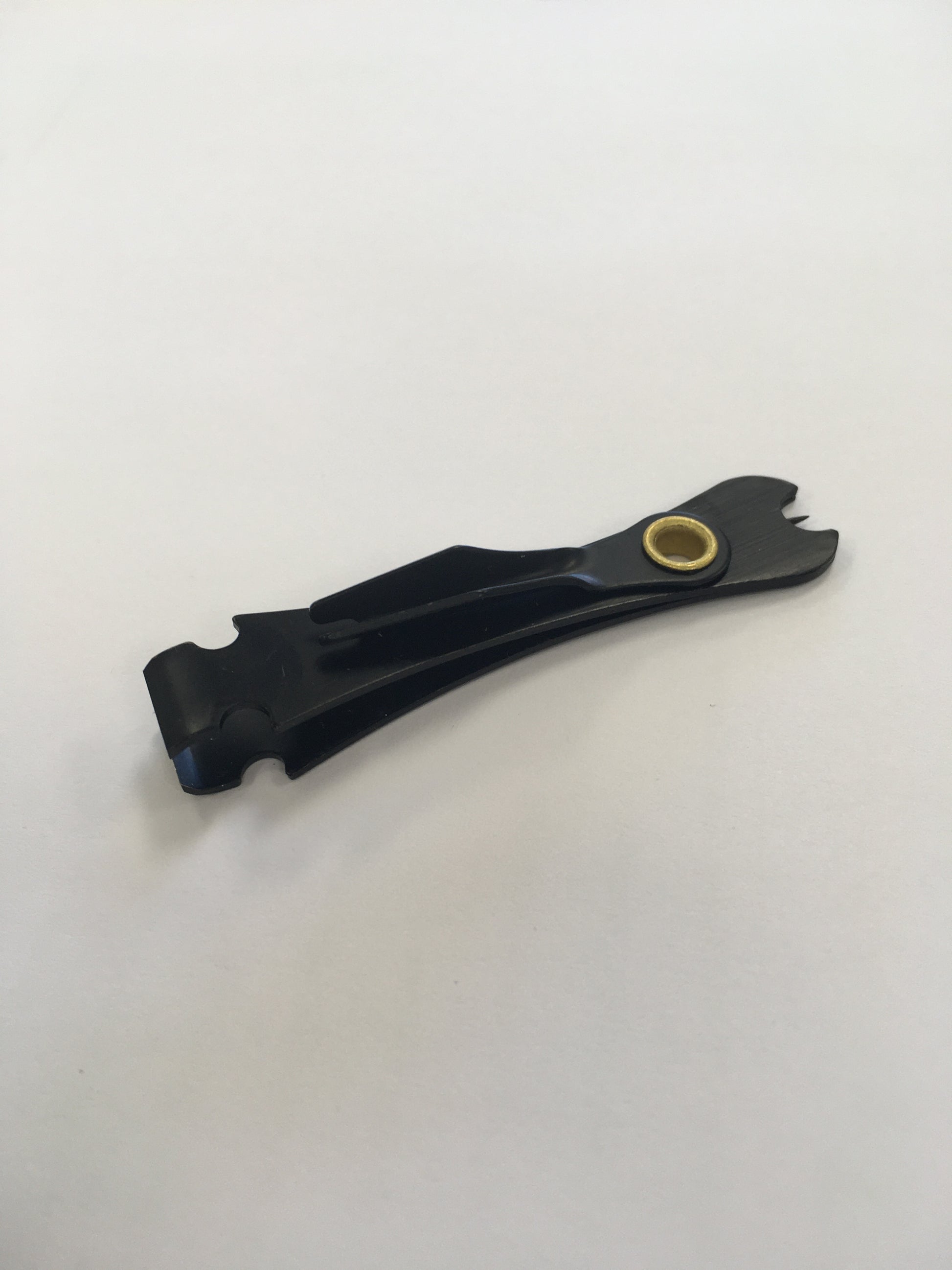 Slim profile Nipper finished in matt black with hook eye cleaning spike and knot tying tool.