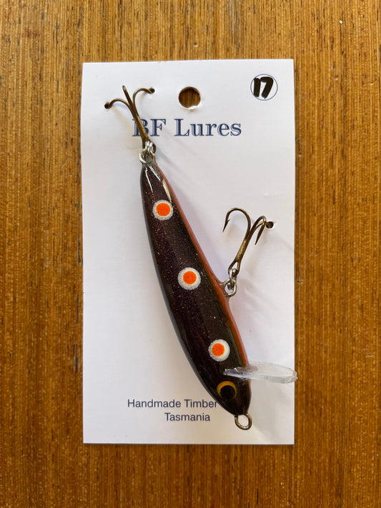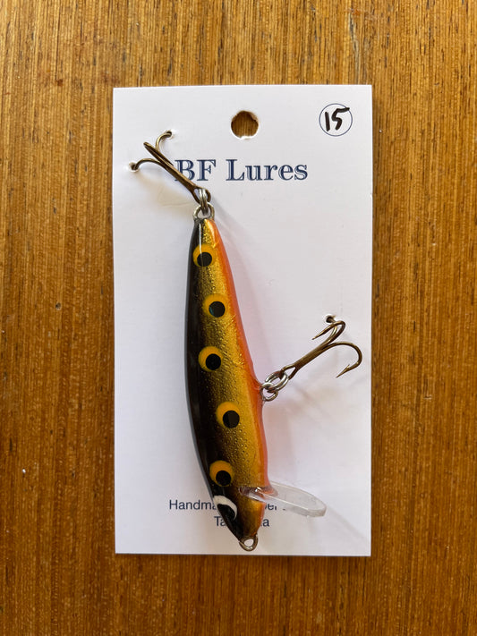 The BF Lures 60mm Minnows are hand crafted in Tasmania from King Billy Pine while the BF Lures Fish Cakes are crafted from Tasmania's legendary Huon Pine.