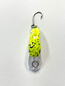 The single hook has a great hook up rate and wont pick up weed and snag like a treble can.