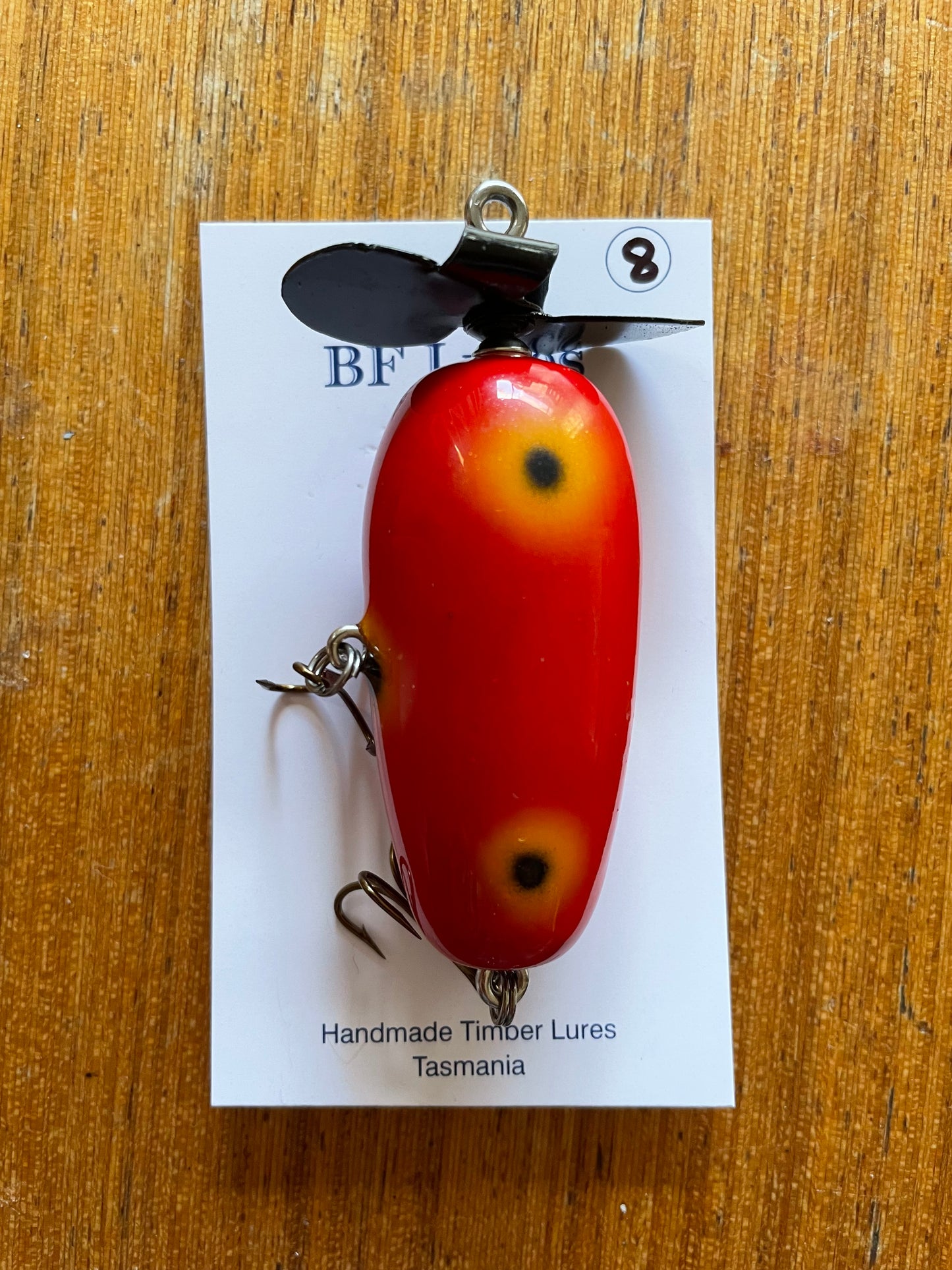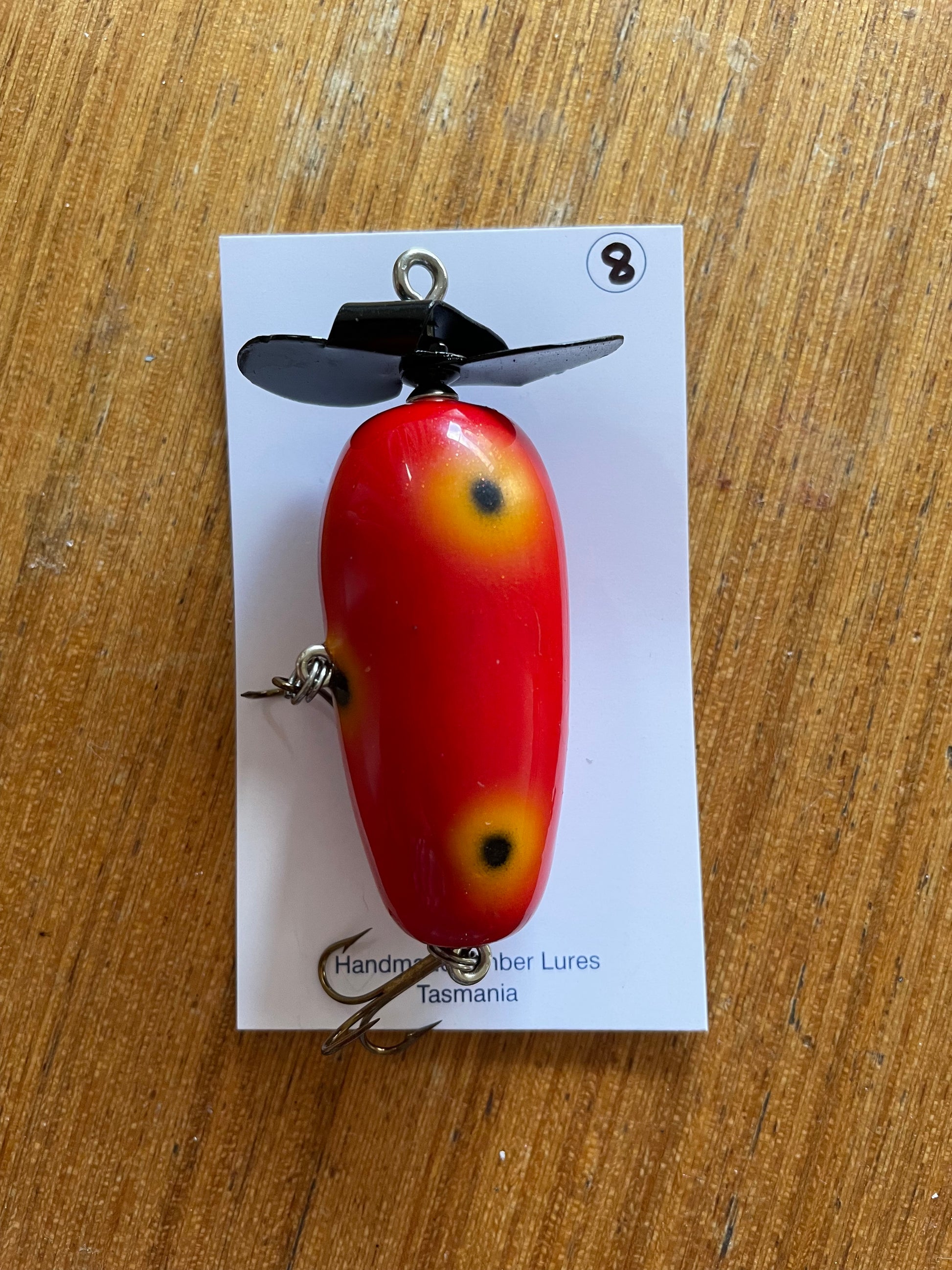 Hand made in Tasmania from Huon Pine, these high quality surface lures have been individually tested and have proven to be very effective trout lures though out Tasmania and Victoria.
