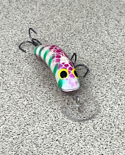 The AC lures Slim Invader are constructed from injected plastic (which enhances durability) and use use the highest-quality fittings, laser-cut Lexan bibs and VMC hooks. The vibrant finishes are beautifully detailed.