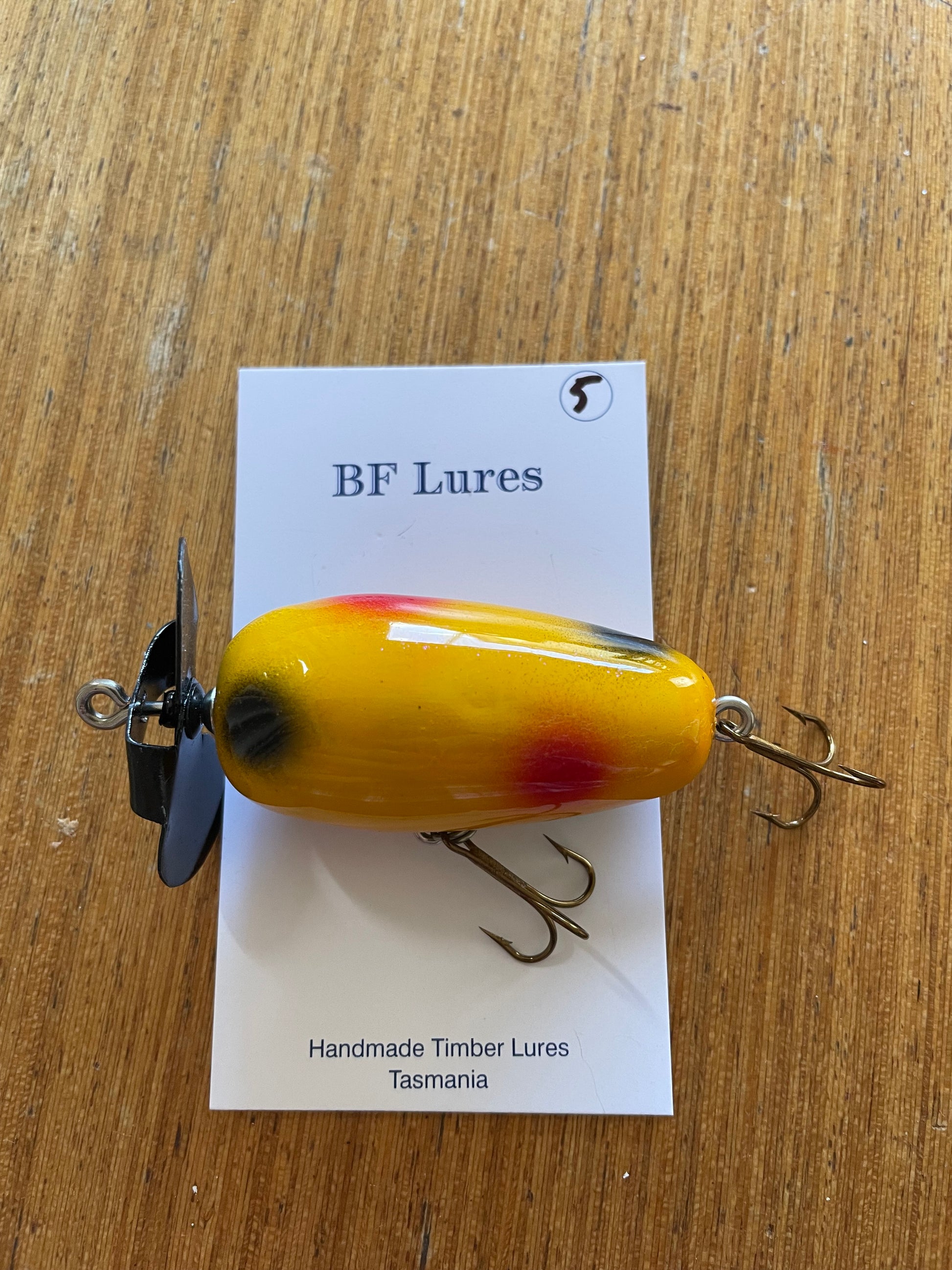 Hand made in Tasmania from Huon Pine, these high quality surface lures have been individually tested and have proven to be very effective trout lures though out Tasmania and Victoria.