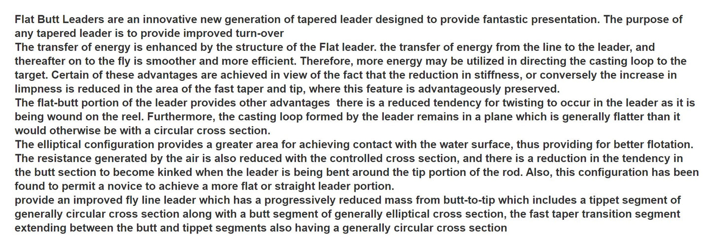 Flat Butt Leaders are an innovative new generation of tapered leader designed to provide fantastic presentation. The purpose of any tapered leader is to provide improved turn-over.