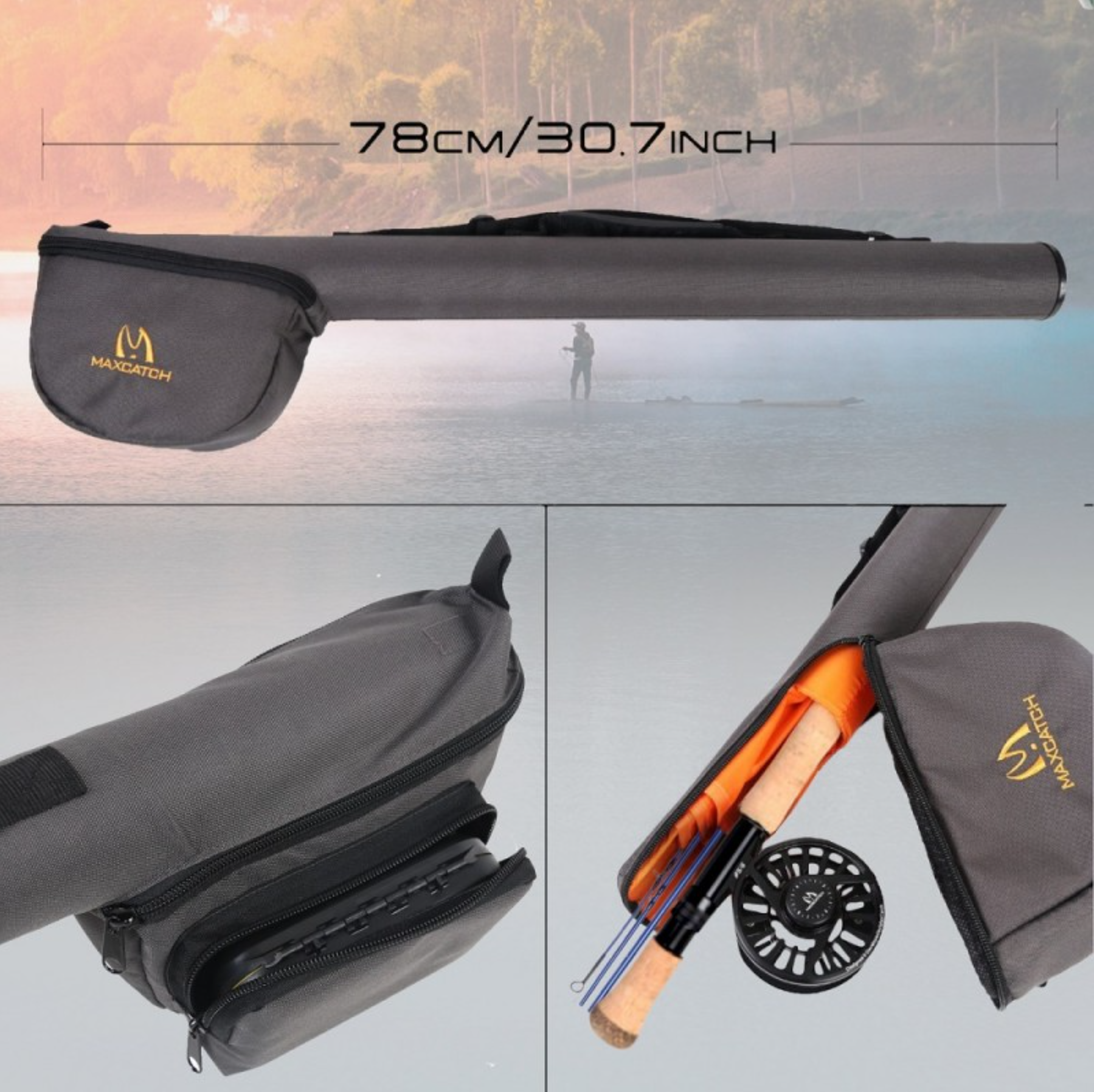 - Blue durable Cordura rod tube with four compartments