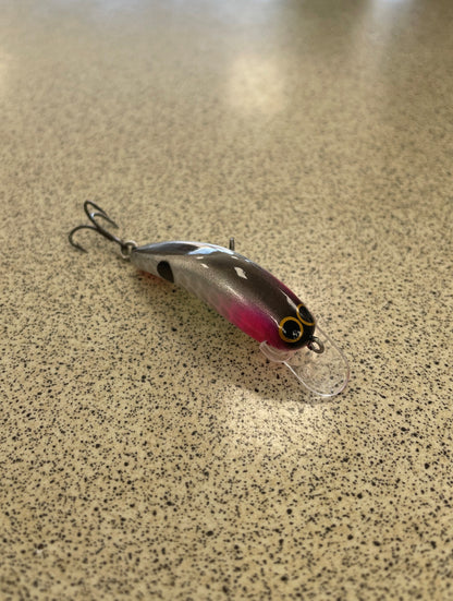 The Lil Ripper comes standard with VMC 9632BZ size 8 trebles and 1H stainless steel split rings, as with all Oar-Gee Lures, best results are achieved when using a loop knot, although a small clip without the swivel will achieve the same results.