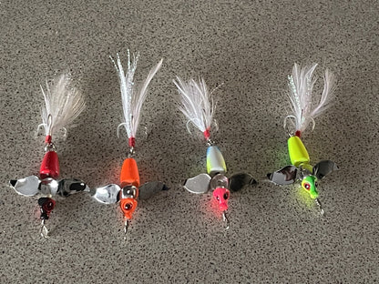 The Turbine features a mid body metal blade that spins as the lure is retrieved, its a different take on the in-line spinner style of lure and is very effective on a wide range of species including Trout, Perch, Bass, Bream and Flathead.